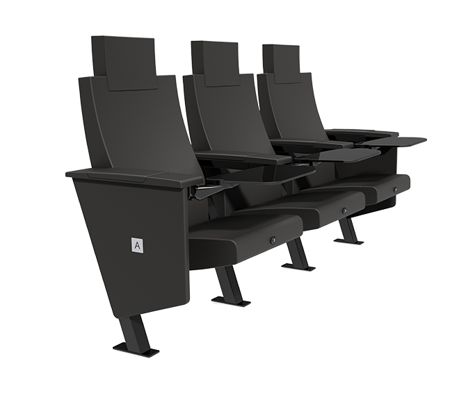 Simple elegant design for suites vip seating and other applications - with multiple options including robust oversized anti-panic tablet arm and integrated steel cupholder in 5.0" arm
